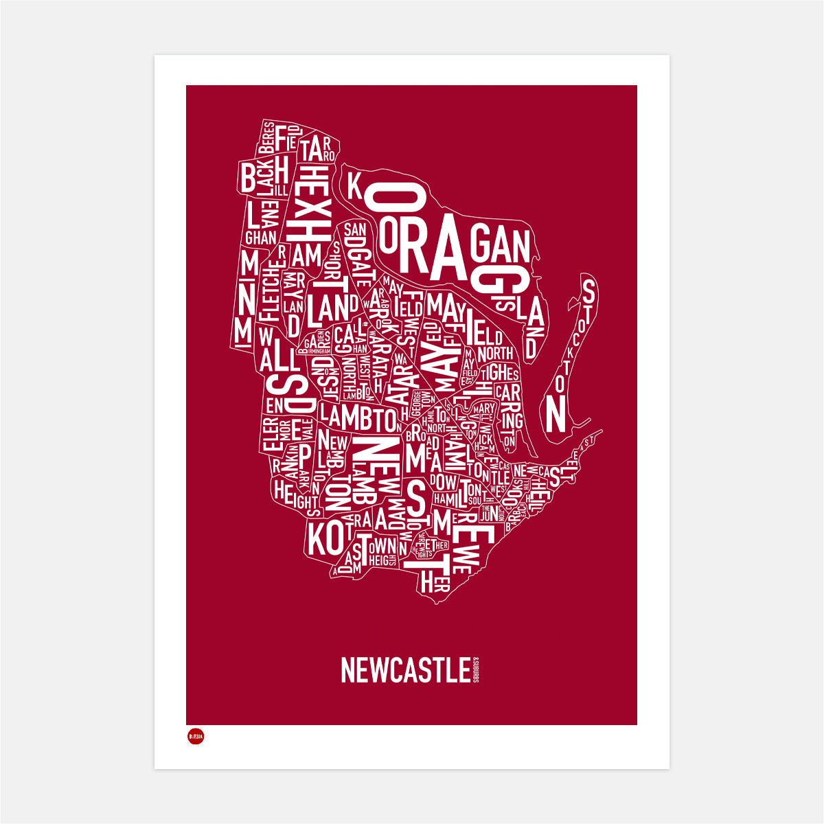 Our last original screenprint of Newcastle in striking Urban Red.