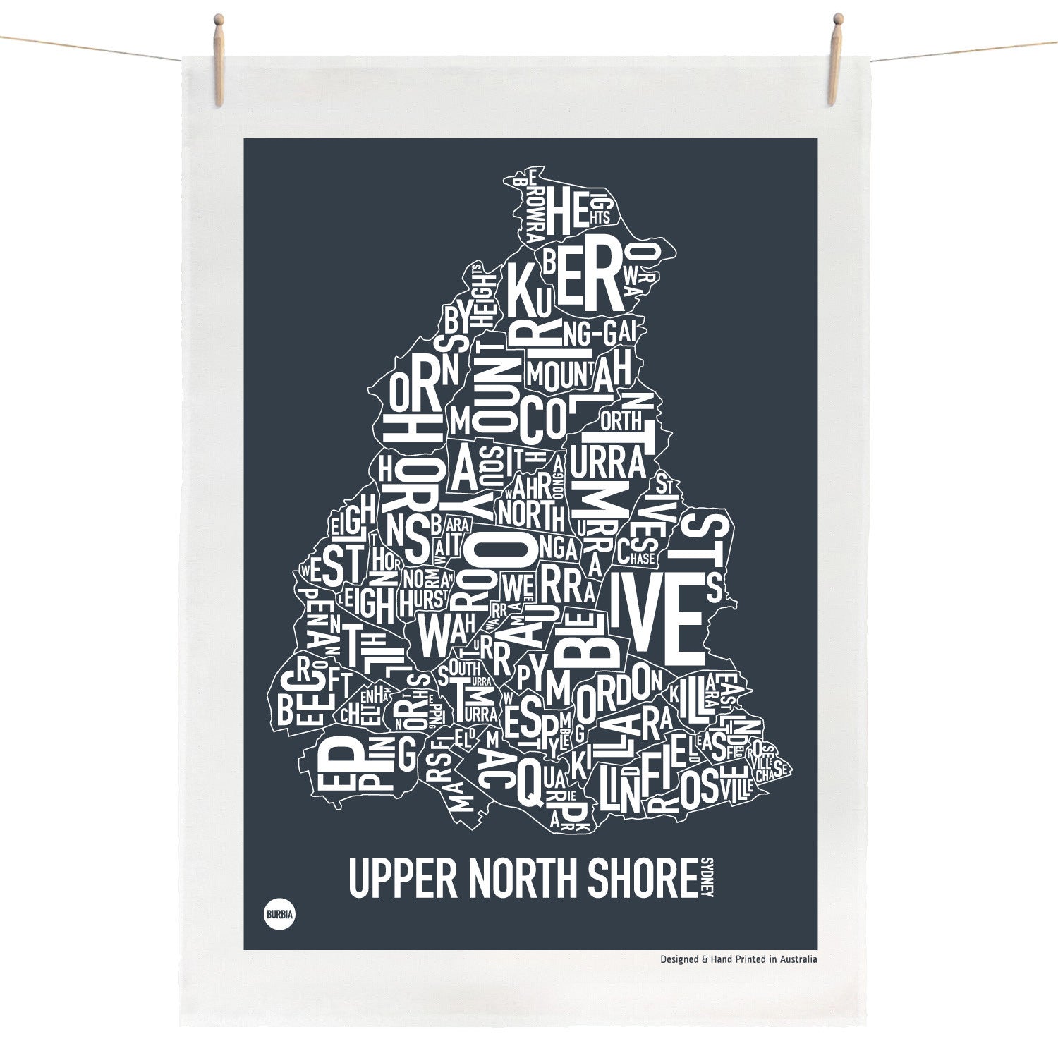 Featuring the leafy suburbs of the Upper North Shore, Sydney, spanning from Epping, out to Roseville, and all the way up to beautiful Berowra. Show your suburban love in the kitchen with our type print tea towels.